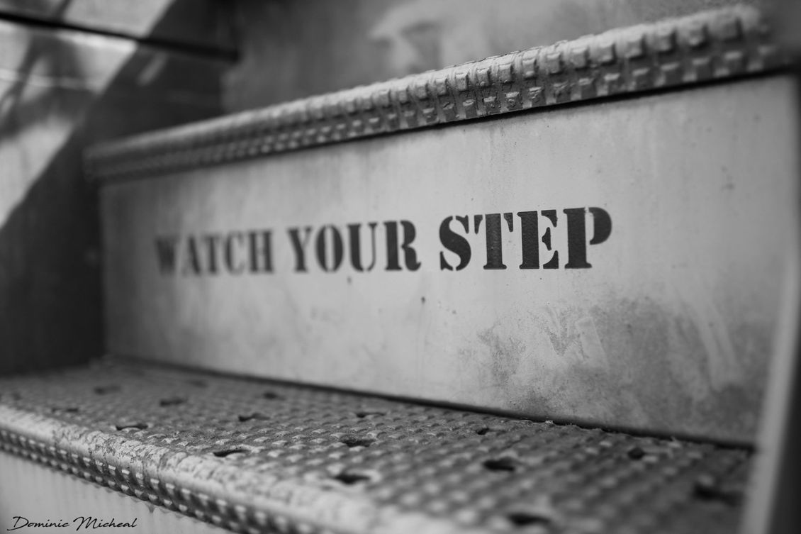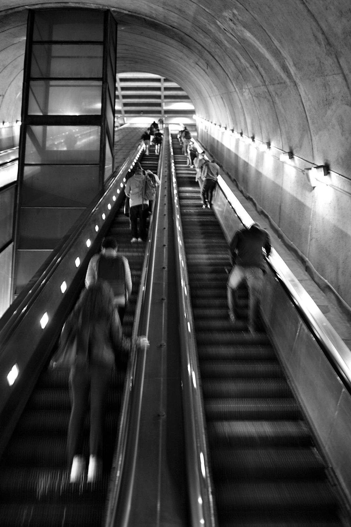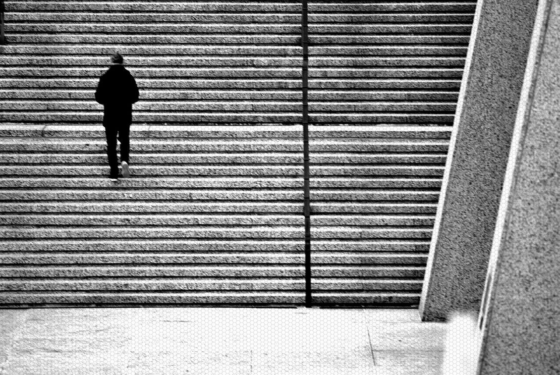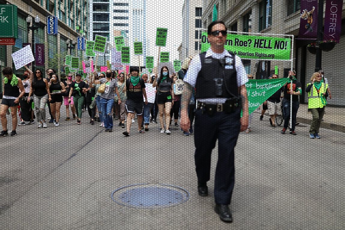 Protestors descend the stairs as they converge onto the famous Chicago Riverwalk.