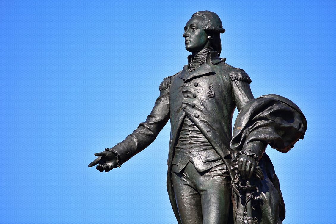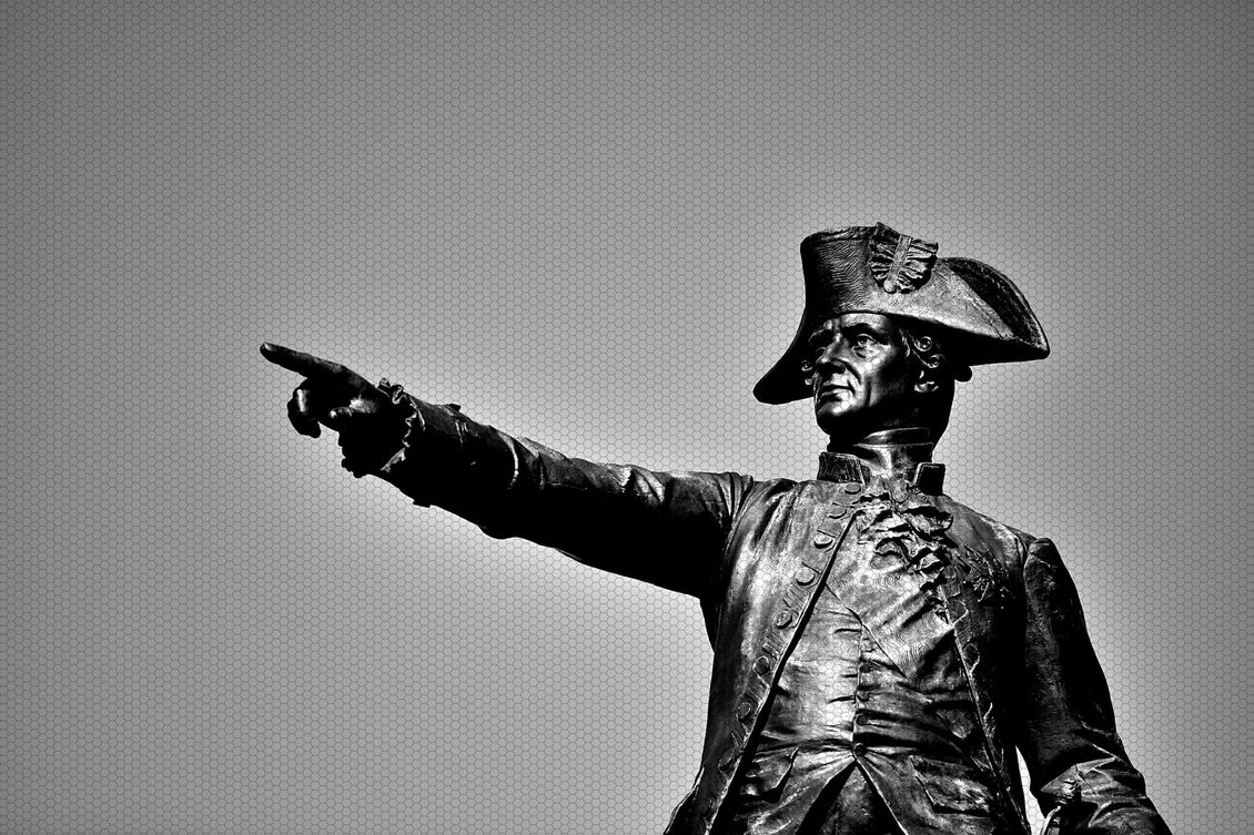 A Man stands with his rifle in one hand and the Bill of Rights in the other.
