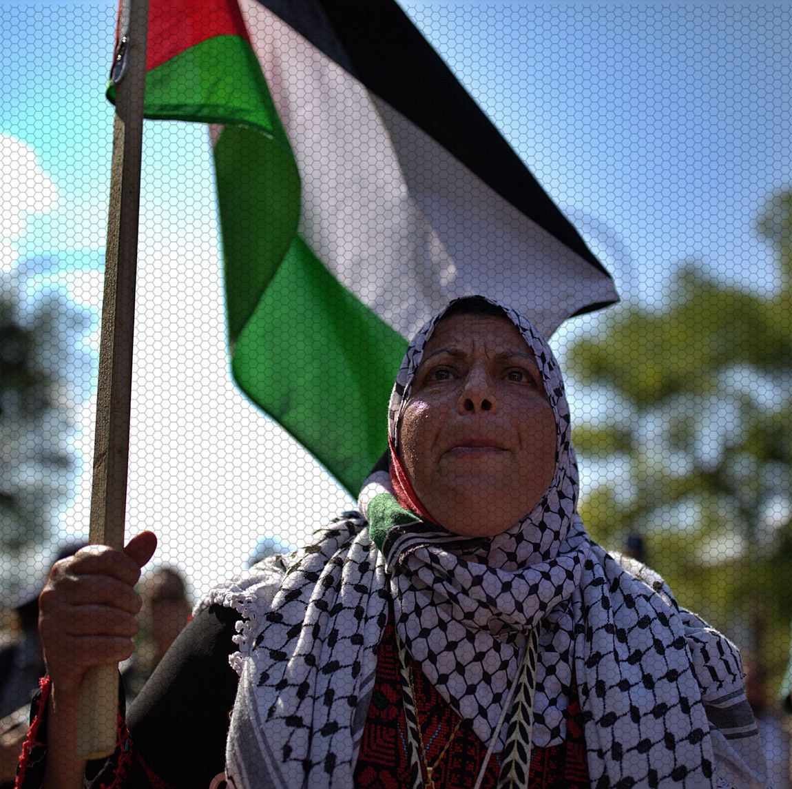 Palestinian activist Jawahir Kamil protesting outside of the 2024 Democratic National Convention.