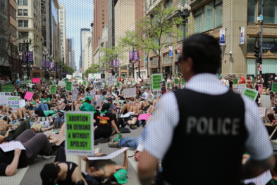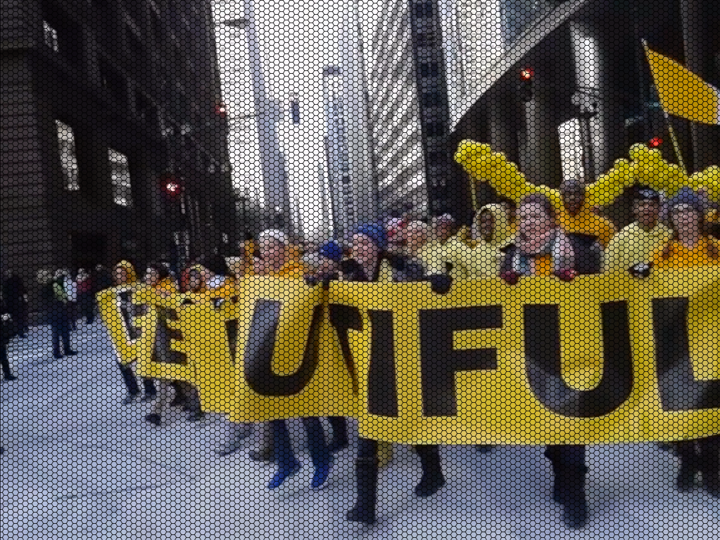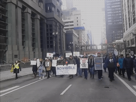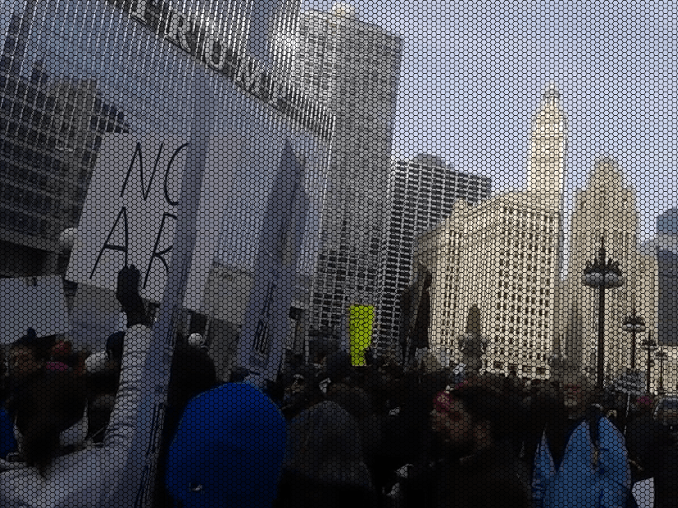 Award nominated elevated shot of thousands marching in the streets of Chicago.