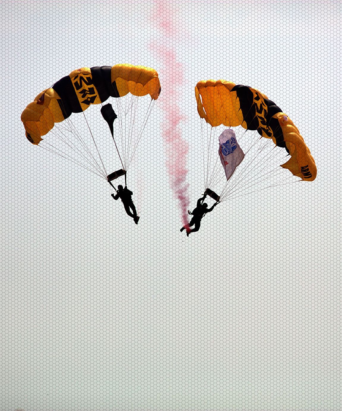 U.S. Army Parachute Team the Golden Knights put on a thrilling display for the crowd during rehearsals for the 2025 Chicago Air & Water Show.