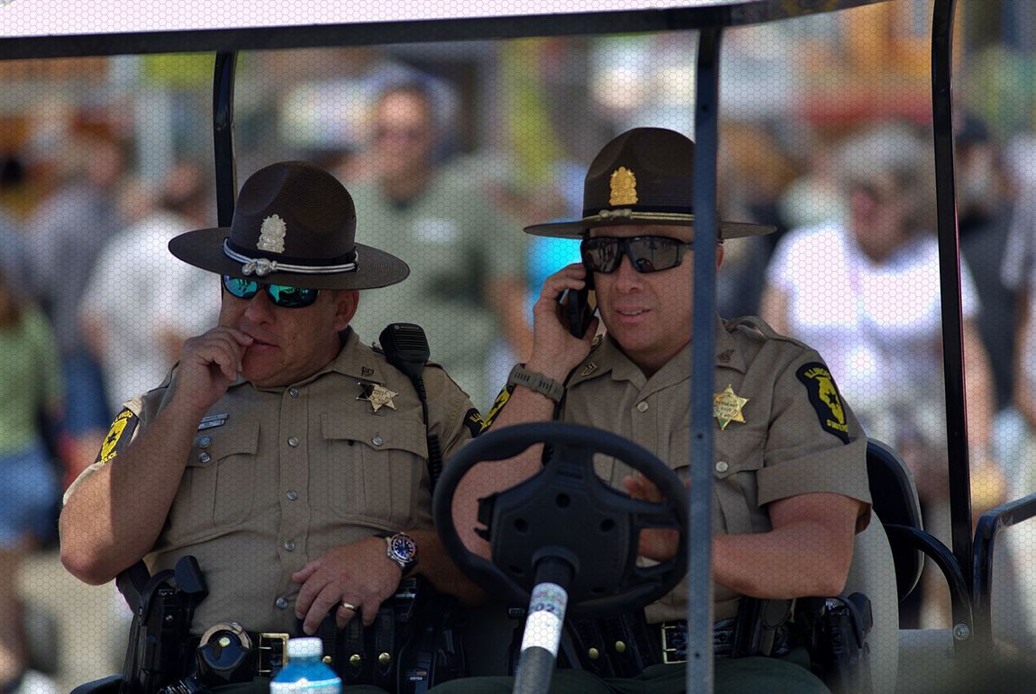 Illinois State Troopers patrol the fairgrounds at the 2023 Illinois State Fair.