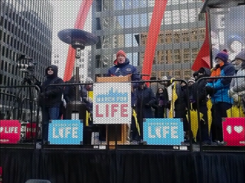 Chicago Bears board member and Vice President of Special Projects Patrick McCaskey speaking at the March for Life on a cold January day.
