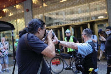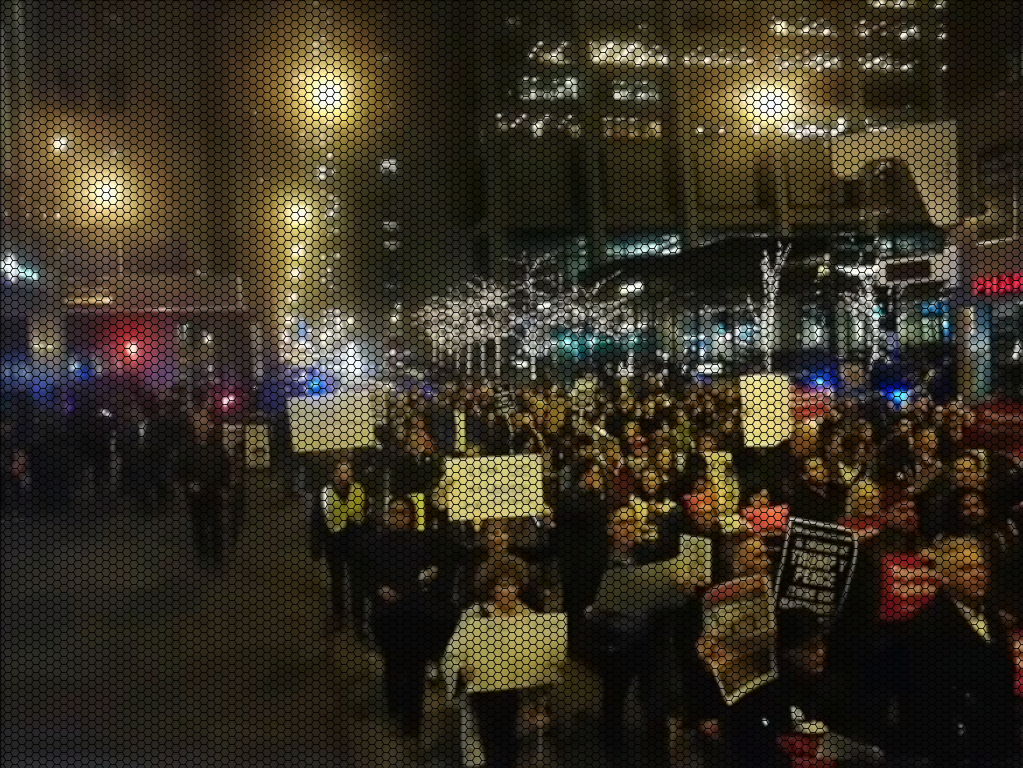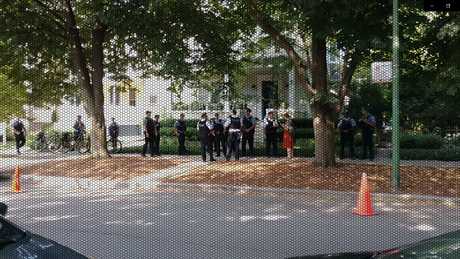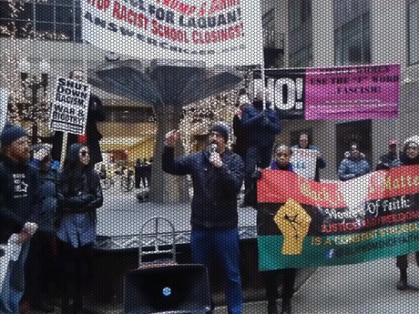 Chicago Police guard Rahm Emmanuel's house in Ravenswood as activist convene during the "Justice for Jalen" rally.