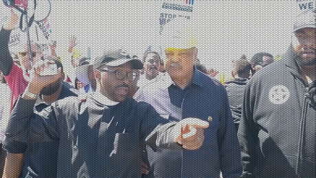 Rev. Calvin Morris speaks to the crowd durring a union rally.