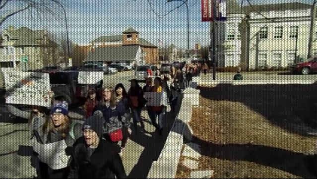 Photo of political candidates opportunistically marching with maliable teens during the nationally covered Barrington High School walk out.