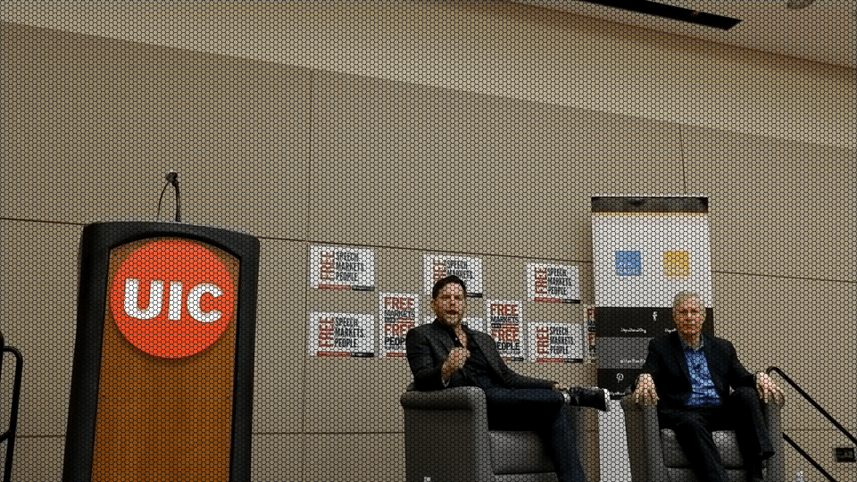 Dave Rubin and Yaron Brook speak to a crowd full of eager ears during a stop at UIC.