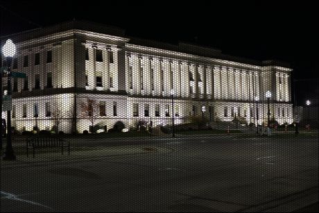 The Kenosha County Courthouse at about 2 A.M. on the 11th day of the Rittenhouse trial, it's beautiful Greek Revival architecture seen in a moment of peace and serenity.