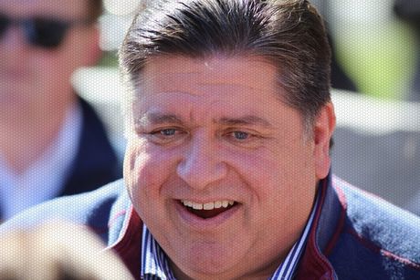 Illinois Gov. J.B. Pritzker greets a suporter in the crowd while campaigning for re-election
