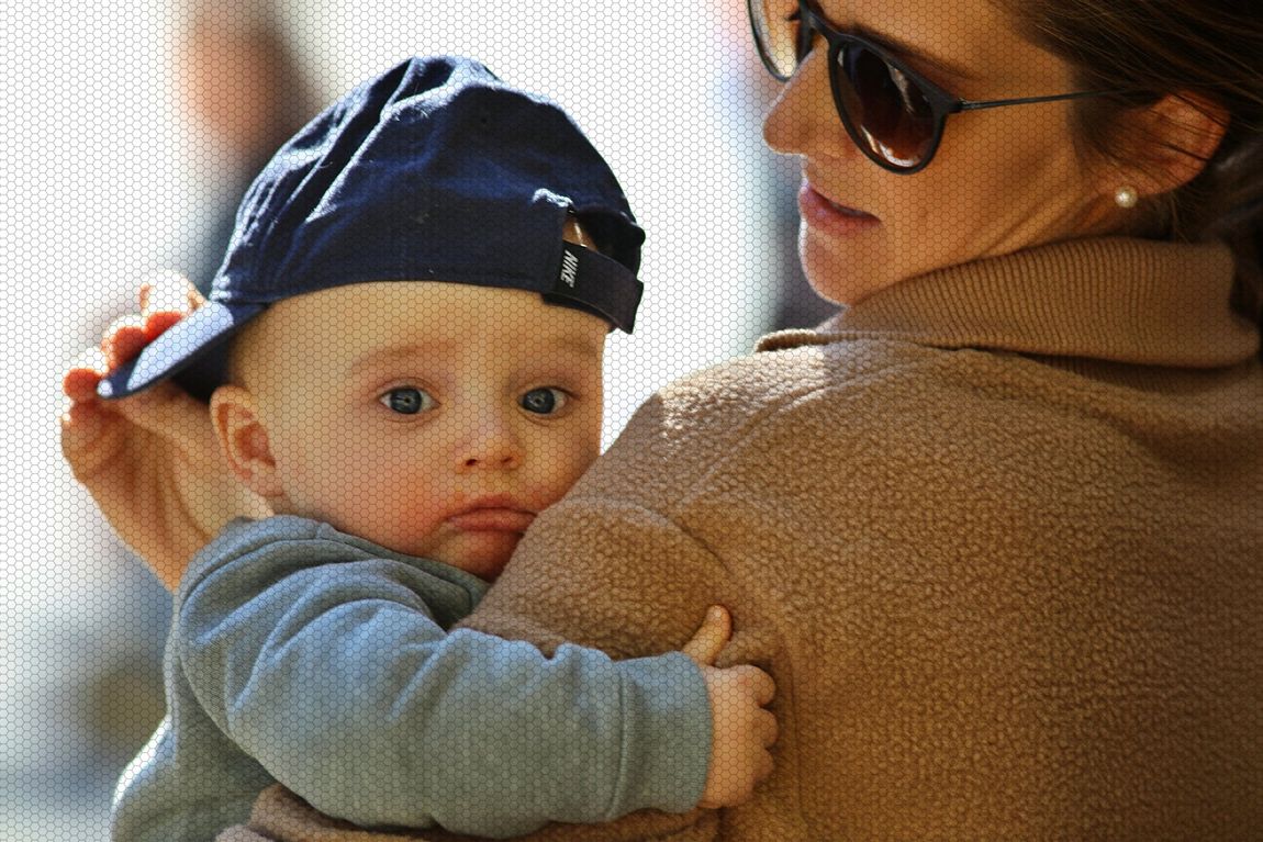 This Mother adjusts her child's hat while cheering on the runners at the Chicago Marathon.