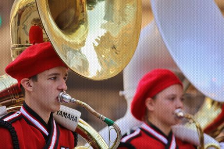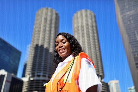 Chicago city employee providing a wondeful, candid pose while she oversees her portion of the Columbus Day Parade.