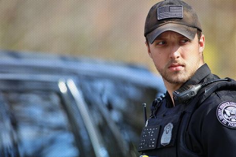 U.S. Secret Service Agents and an Explosives Detection Unit discuss preperations for Vice President Pence's motorcade.