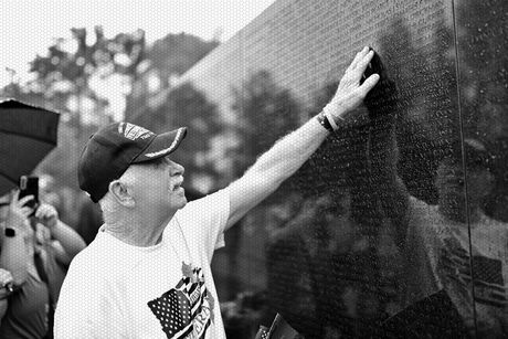 A Vietnam Veteran pays tribute to a fallen serviceman on the 40th anniversary of the Wall.