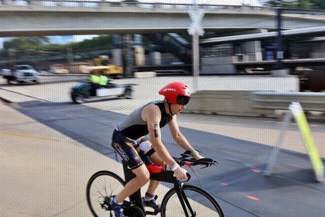 "Rocket 888", popular triathlete shown in an iconic pan style photo.