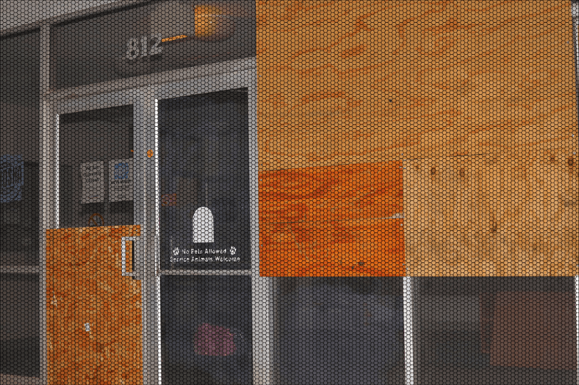 A former branch of the Kenosha Public Library System with windows boarded up more than a year after the 2020 riots rocked this Midwest community.