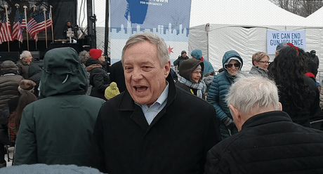 Illinois Sen. Dick Durbin greets people on a cold Chicago afternoon.